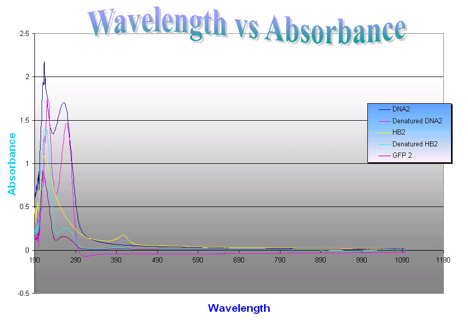 smaller absorbance. The GFP curve peaks around 210nm and