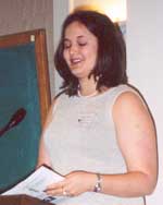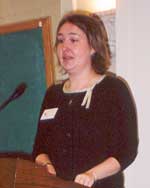 Trustee Thomas Sienkewicz presented the prize for the best service project to Beta Psi at Rhodes College, and Becky Tompkins received the $50 award for the best presentation of a paper, with the other two presenters receiving awards of $20 each, from Beta Pi Adviser Levine. All three also had their registration fees remitted. Rozmeri Basic, Professor of Art History, lectured on "Etruscan Art and Architecture." Once the banquet concluded at 9:00 p. m., delegates used the evening to enjoy their own festivities. The next morning (March 30, 2003), the second business session of the convention took place in the |